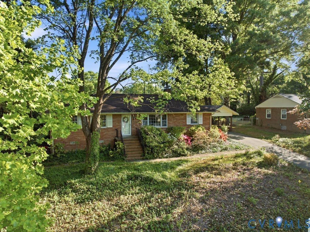 This charming brick ranch in the established Cherokee Farms community offers a blend of original craftsmanship and sophisticated architectural details. Mature landscaping and a classic hip roofline create an inviting first impression, leading into an interior characterized by original hardwood floors. The spacious living room serves as a central gathering point, featuring an elegant mantel with decorative trim and functional built-in cabinetry. Adjacent to the living area, the dining room transitions seamlessly through French doors into a sunroom topped with a warm wood ceiling and surrounded by wraparound sliders that provide views of the lush, landscaped backyard and patio area.The kitchen highlights timeless, solid wood cabinetry paired with a modern stainless steel refrigerator and a large picture window overlooking the rear yard. Tucked away through the laundry room, a cozy nook provides a private retreat for remote work or creative pursuits. The primary bedroom is well-appointed with built-in shelving and a walk-in closet, while two additional bedrooms offer versatility and continued hardwood flooring. Both full bathrooms feature classic tile surrounds, one with a tub and shower combo. This home combines the enduring quality of 1950s construction with a functional layout, featuring a paved driveway with a carport and a new HVAC system installed in 2024.